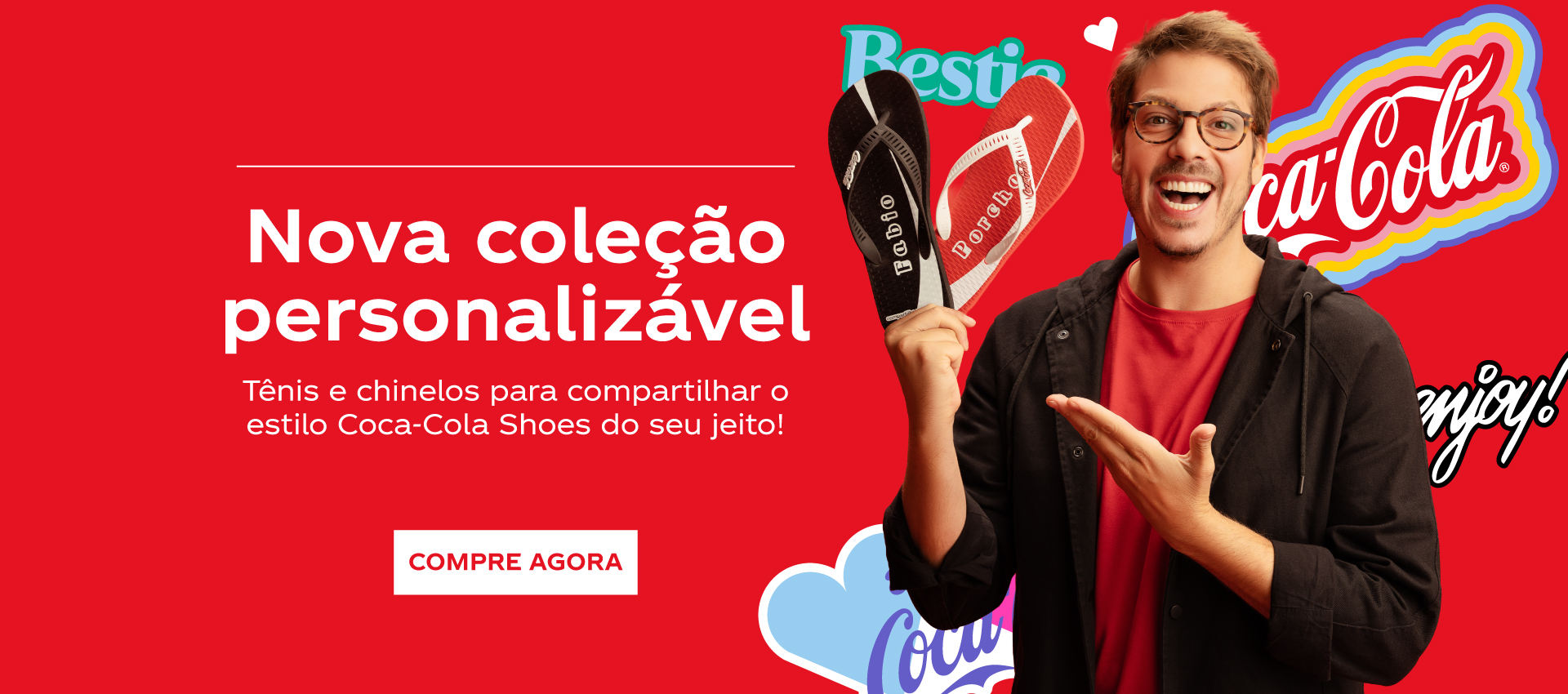Coca-Cola Shoes é a linha oficial de calçados da marca Coca-Cola. Com design exclusivo, nossos tênis e chinelos combinam autenticidade, conforto e qualidade para quem busca atitude e versatilidade para o dia a dia.